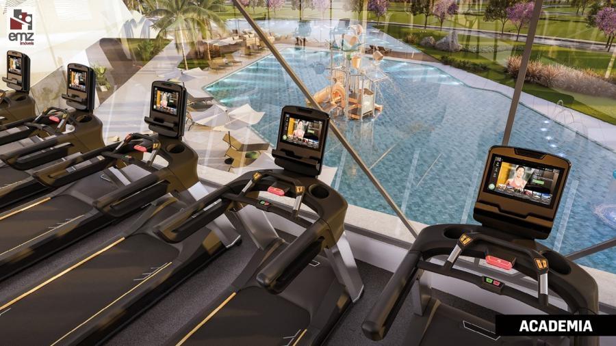 Esportes e bem-estar: quadras de beach tennis, tênis em saibro, padel, campo de futebol, espaço para crossfit e academia completa