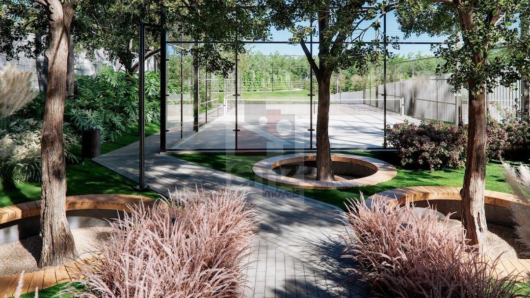 Ampla área de lazer: quadras de beach tennis, padel, poliesportiva, pet place, espaço fitness, churrasqueira, lounge festas, playground e mais